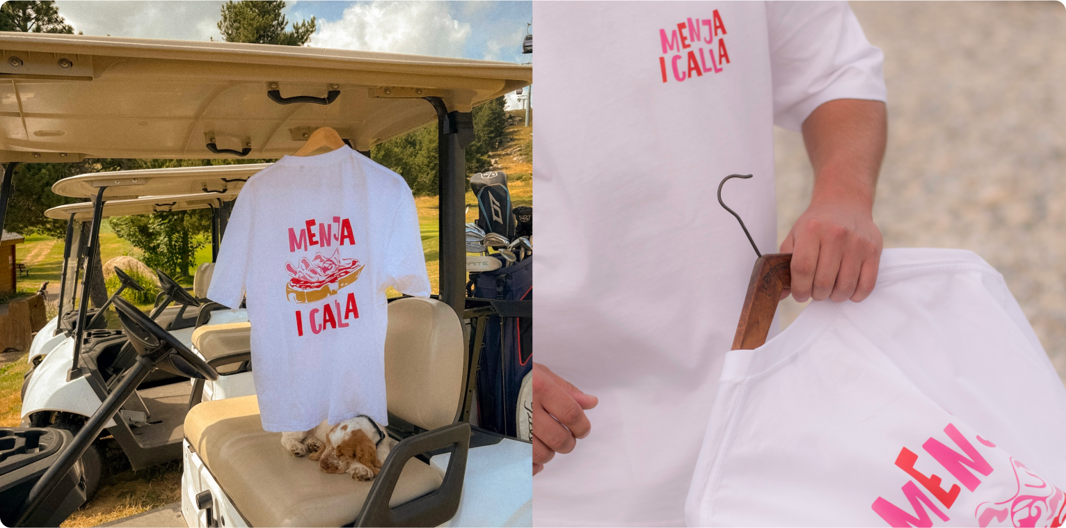 Lusign Shop transforme les petites phrases du quotidien et les symboles des villages en affiches et t-shirts graphiques. Chaque visuel devient une “capsule d’identité locale” : une expression drôle qu’on a tous entendue (“menja i calla”), un clocher familier, une ambiance typiquement catalane. Le concept repose sur trois piliers :